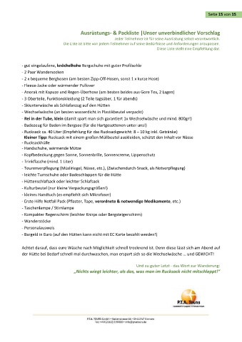 Ausrüstungs- & Packliste |Unser unverbindlicher Vorschlag
